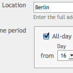 Tragen Sie hier die Adresse des Termins ein, sofern der Termin an einem bestimmten Ort stattfindet. Je präziser die Angabe, desto besser wird der Ort zu finden sein. Wenn der Seitenbetreiber die Kartenfunktion aktiviert hat, wird der Ort zusätzlich auf einer Karte angezeigt. Community Calendar benutzt dazu den Dienst Google Maps. Es können nur solche Orte angezeigt werden, die auch über Google Maps auffindbar sind. Sollte also einmal der Ort falsch angezeigt oder gar nicht erst gefunden werden, so ist es empfehlenswert, direkt auf diese Google-Seite zu gehen und den Ort dort zu suchen. Sie können die gefundenen Koordinaten dann auch in das Eingabefeld des Kalenders übertragen.
